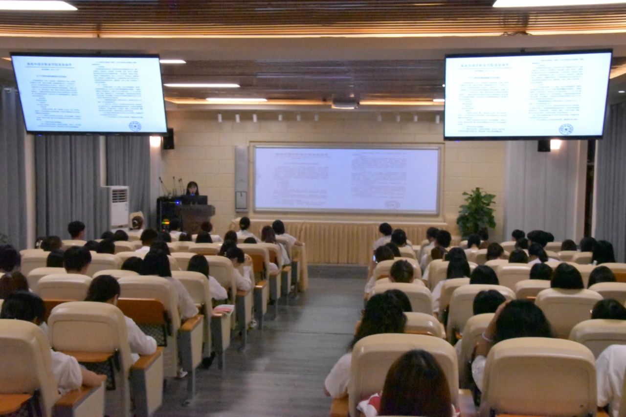专题会上,陈伊媛同学从《关于学联学生会工作人员改进作风服务同学的若干规定》的六条内容:恪守学生本分、牢记服务宗旨、拥抱理想情怀、勤勉务实做事、营造平等氛围和摒弃庸俗风气中为大家进行讲解和分析。