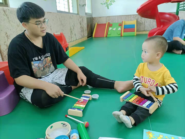 为了让学前教育专业学生在校期间对所学专业的目标岗位有初步认知,加深对未来工作环境的了解,本学期起,英语系学前教育专业的学生志愿者们于每周一至周四下午4点20分至5点20分在校内“宝贝之家”活动室开展志愿服务。此项志愿服务项目的活动主题多样,内容包括讲绘本故事、儿歌表演、游戏、创意手工、绘画、奥尔夫音乐等等。