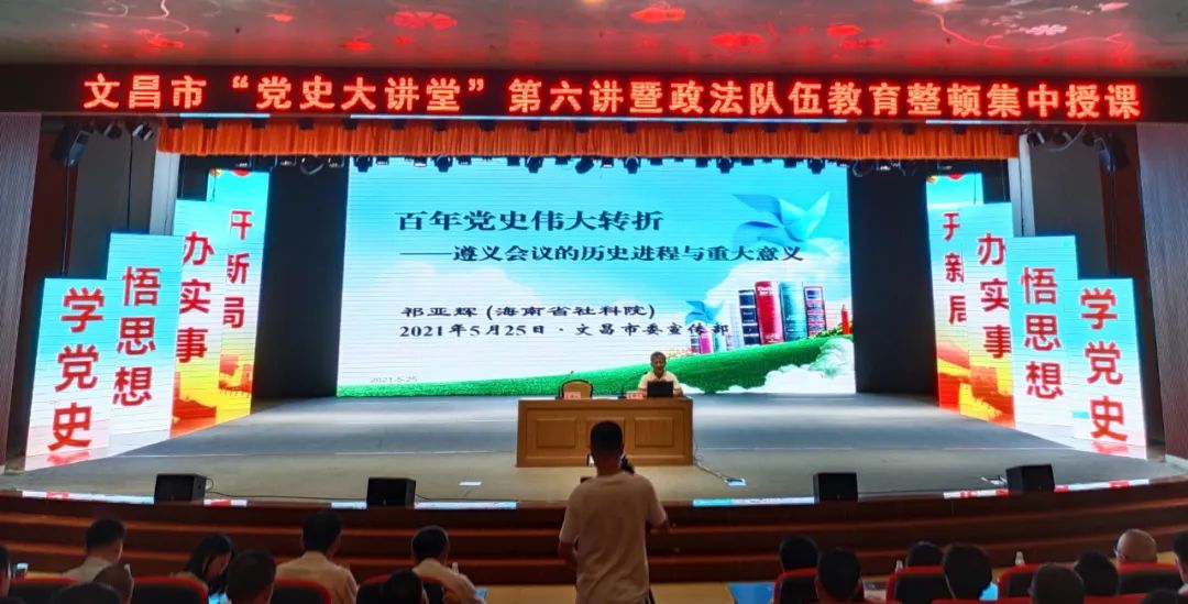为深入开展党史学习教育,进一步学习百年党史伟大转折事件。5月25日上午9:00,文昌市“党史大讲堂”第六讲于新时代文明实践中心(文昌市青少年活动中心小蓓蕾剧场)开讲,我院组织20名师生代表前往现场聆听学习。该讲堂由海南省社科院原副院长祁亚辉博士主讲。