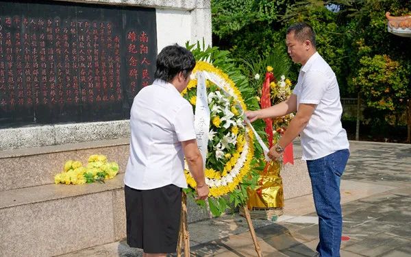 向南阳人民英雄纪念碑敬献花圈,致敬革命先烈