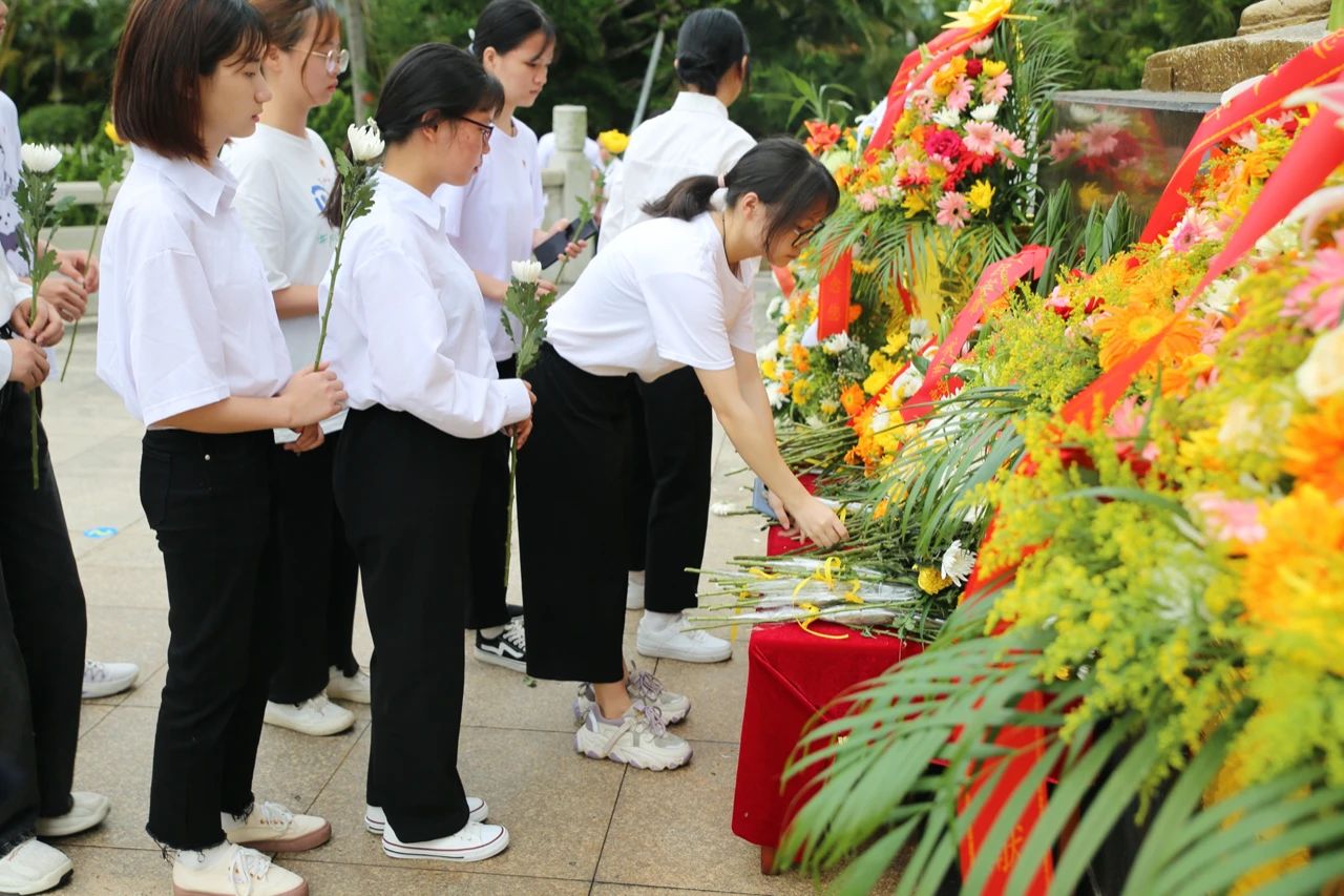 3月31日下午,由我院旅游系党总支书记林明霞带队,旅游系党总支部第三党支部和旅游系团总支共同组织学生党员、入党积极分子、青年团干等,前往文昌南阳人民革命斗争纪念园开展“清明祭英烈”活动。