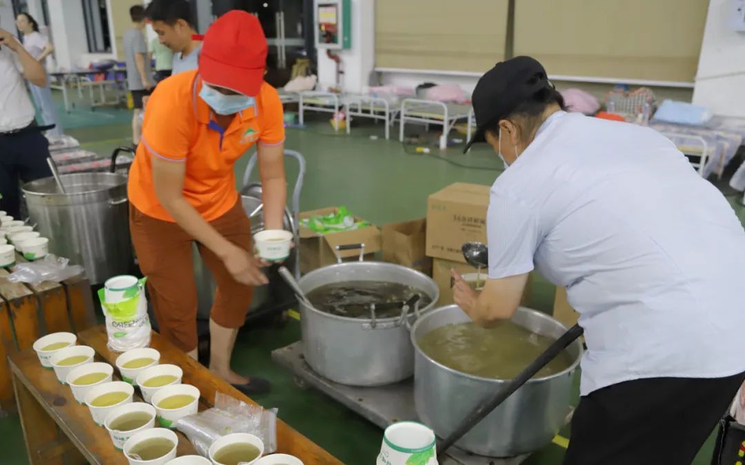 提供绿豆汤、菊花茶、水果等解暑食物