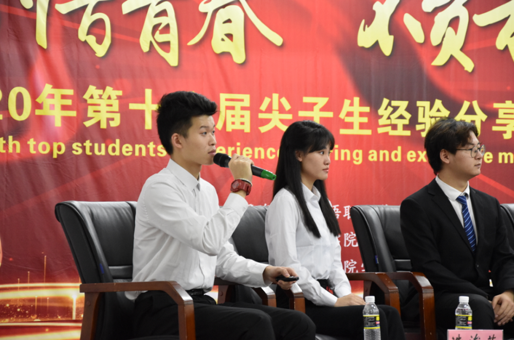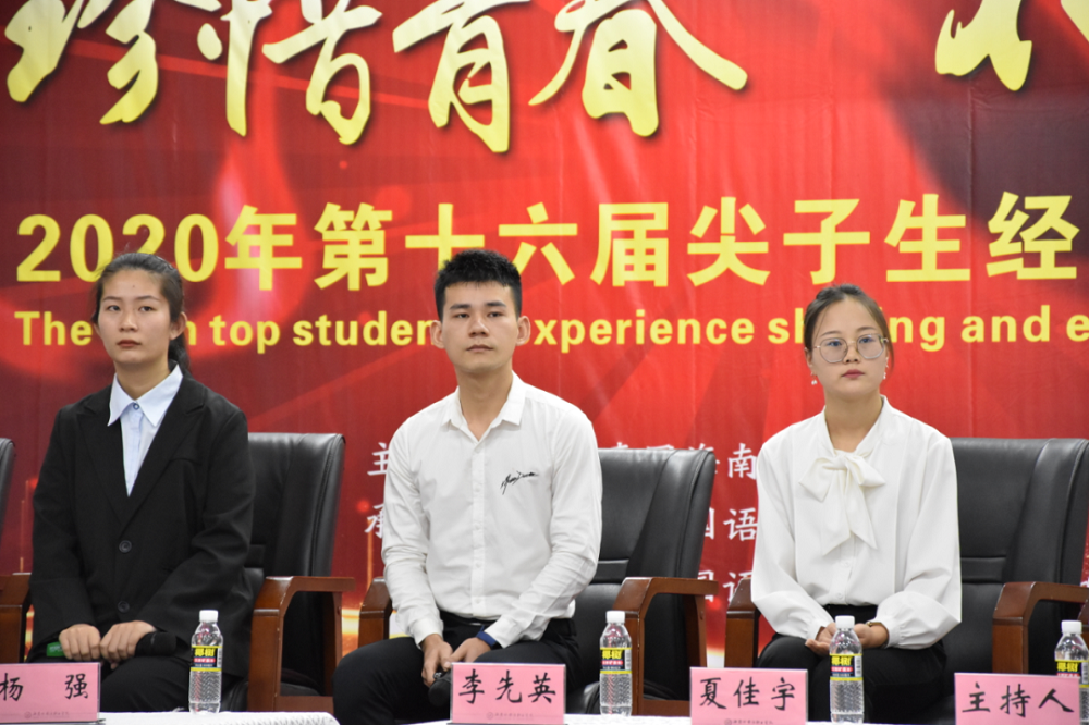 尖子生们,坐姿端正,面带微笑,从容不迫。他们是许多人的榜样,一句句流利的外语,背后饱含着辛勤的付出,激励着萌新们奋发图强。他们出类拔萃,令人赞叹不已,迎来在场的阵阵掌声;他们知无不言,毫无保留拿出自己的独家秘笈。尖子生这个称号,他们当之无愧。