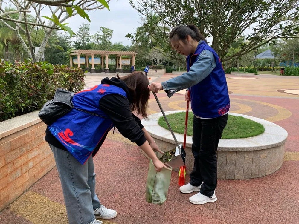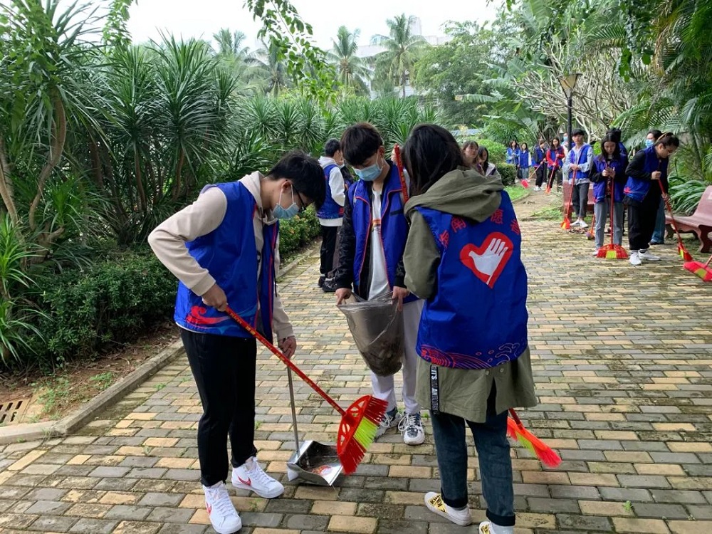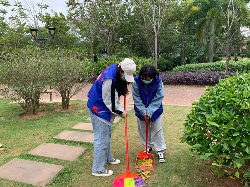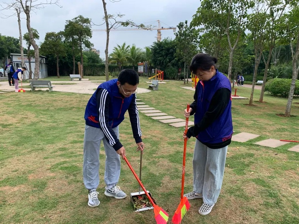 与此同时,各系部志愿者一同前往市教育公园。志愿者们不畏萧瑟的风,有条不紊地清扫公园内的树叶和垃圾,用自己的行动为文昌献出自己的一份力量。