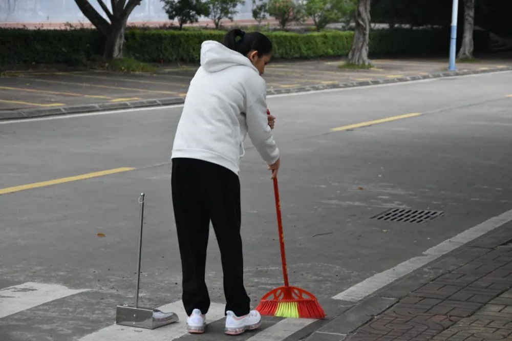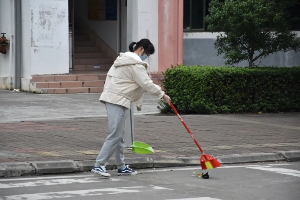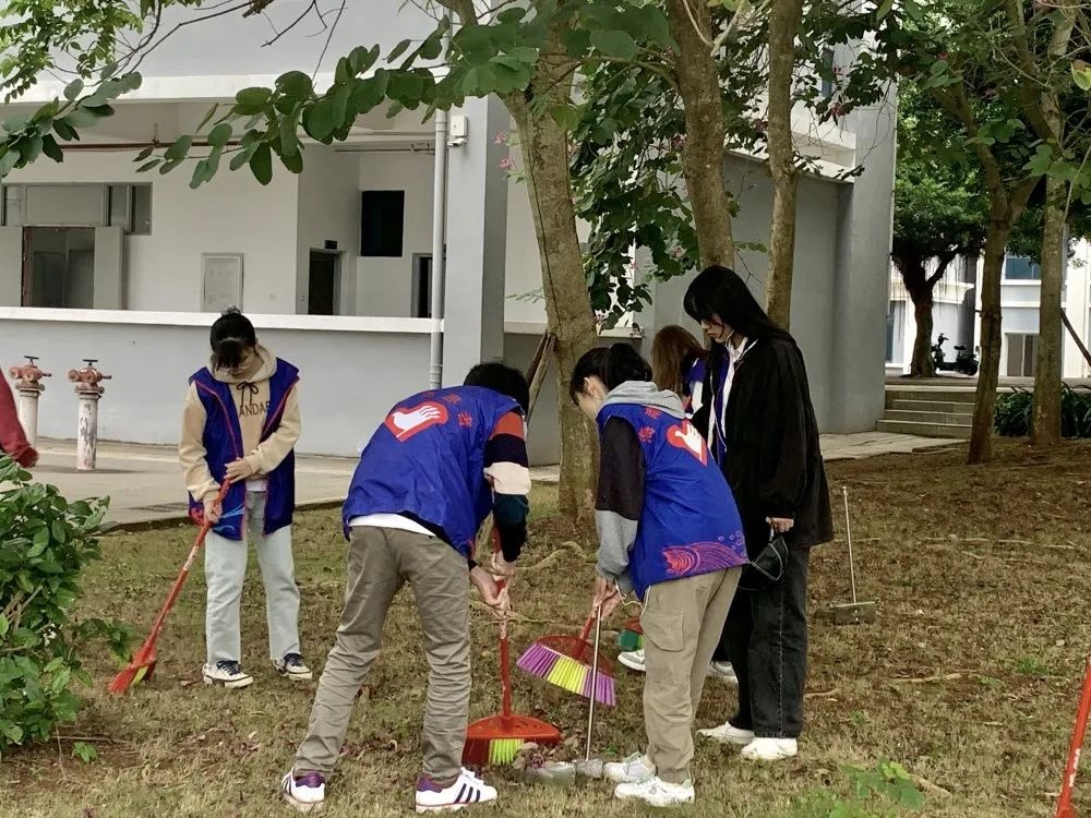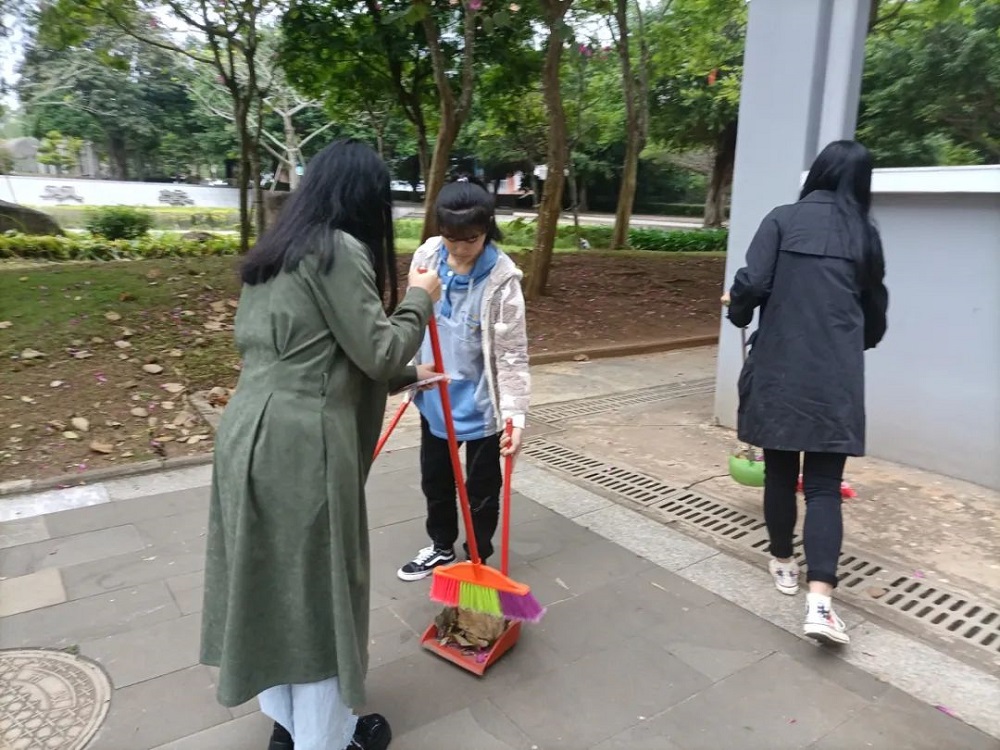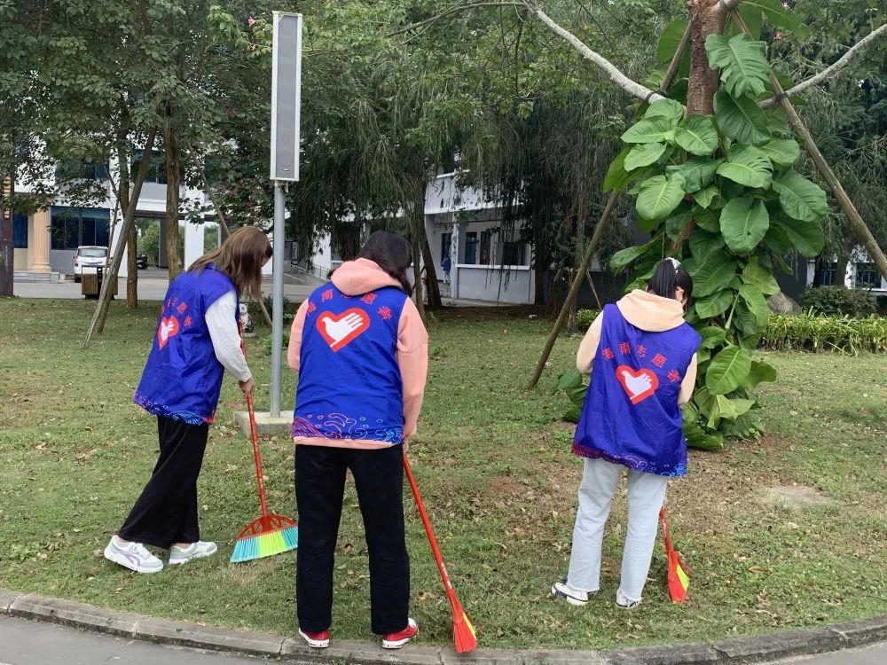 虽然空气中弥漫着丝丝寒意,但志愿者们的热情没有褪减,始终干劲十足。大家拿着手中的扫帚,对校园各个角落进行全面的清理。时至正午,在大家的共同努力下,海外院焕然一新。