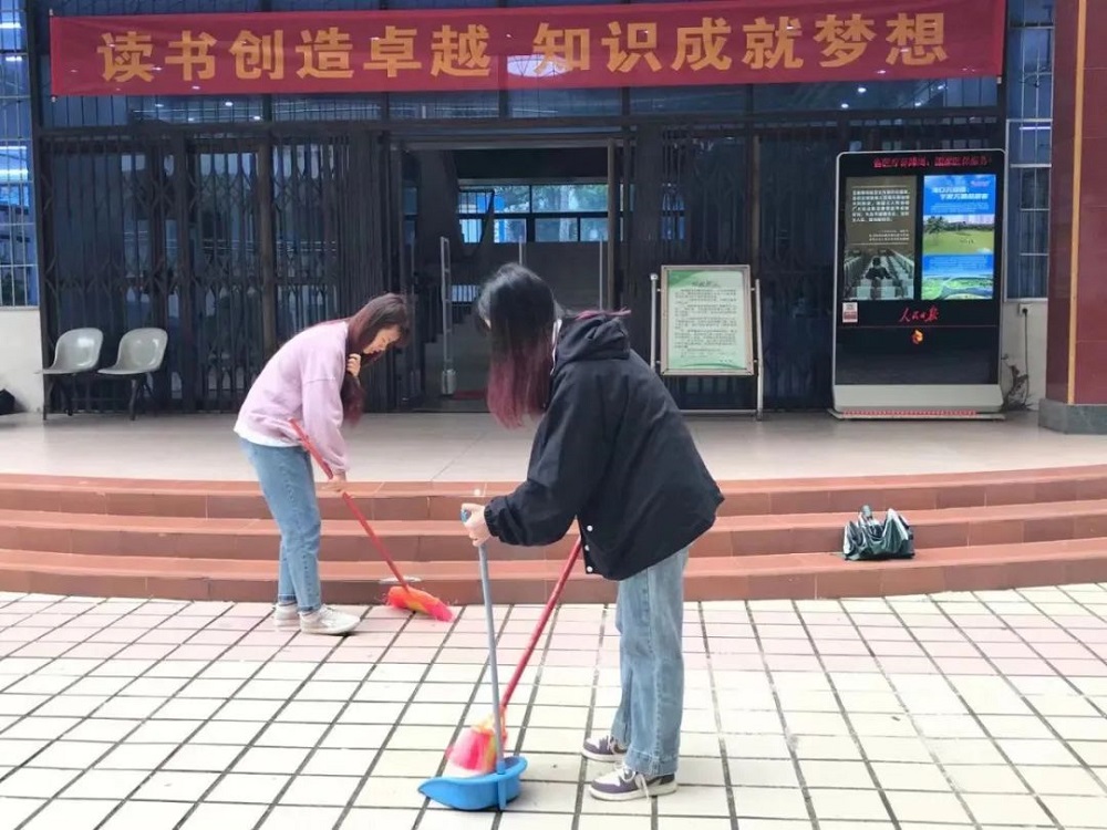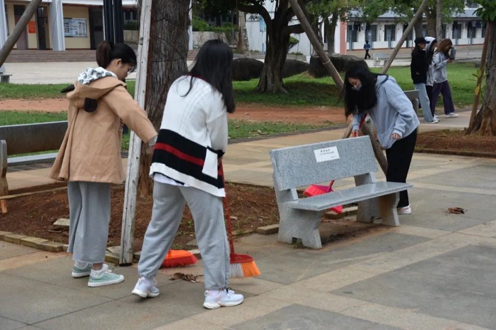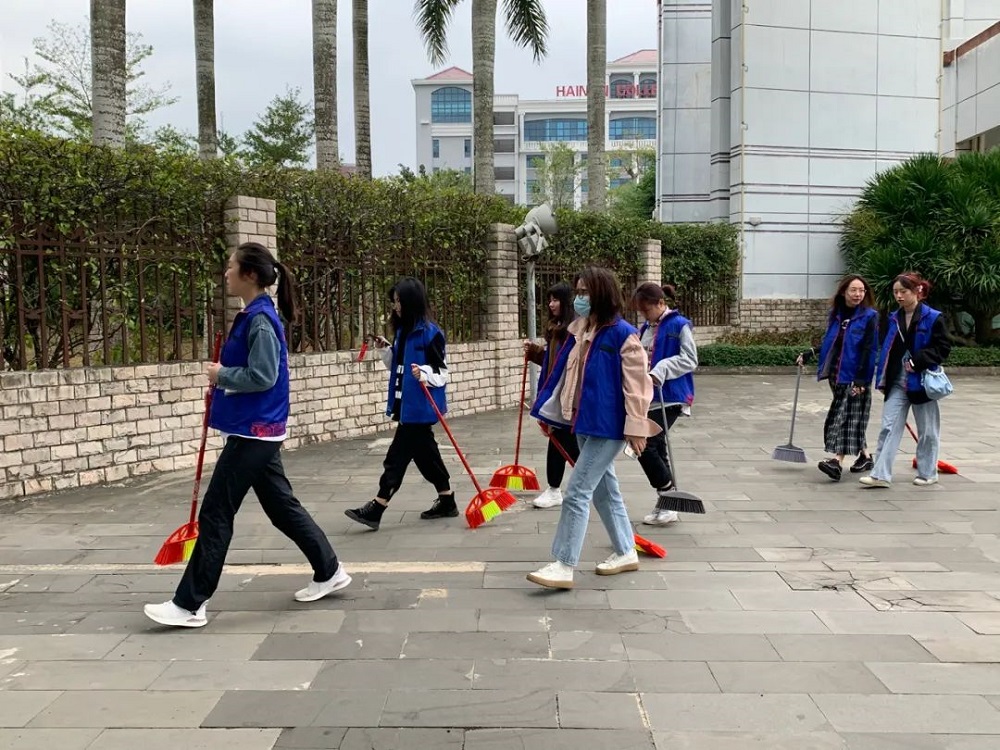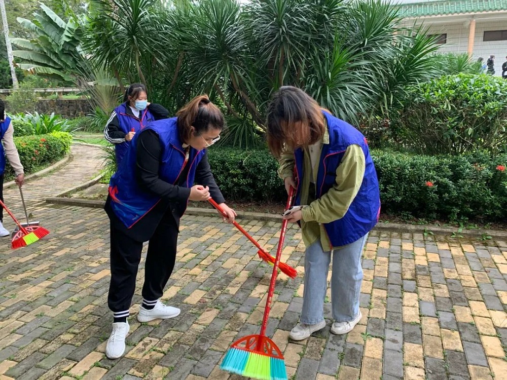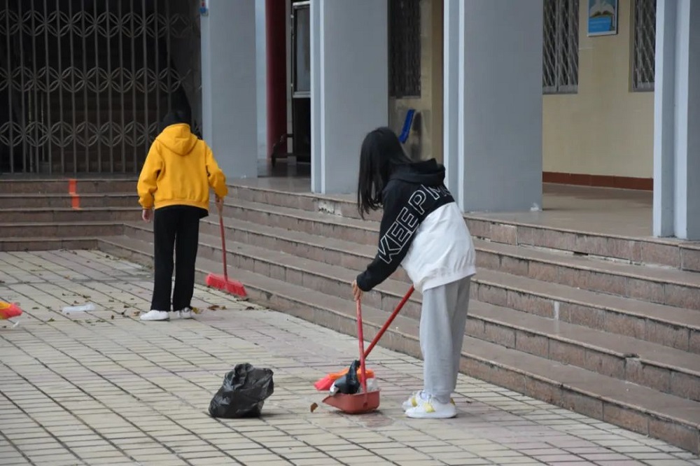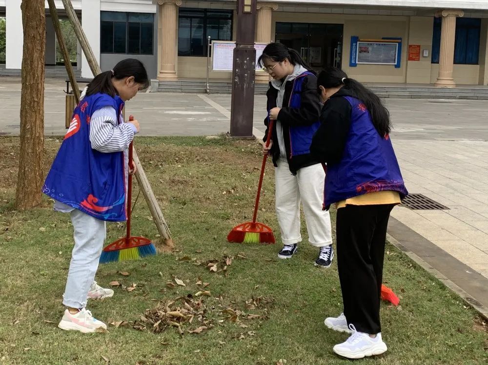虽然空气中弥漫着丝丝寒意,但志愿者们的热情没有褪减,始终干劲十足。大家拿着手中的扫帚,对校园各个角落进行全面的清理。时至正午,在大家的共同努力下,海外院焕然一新。