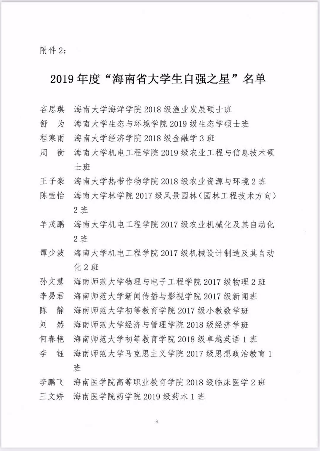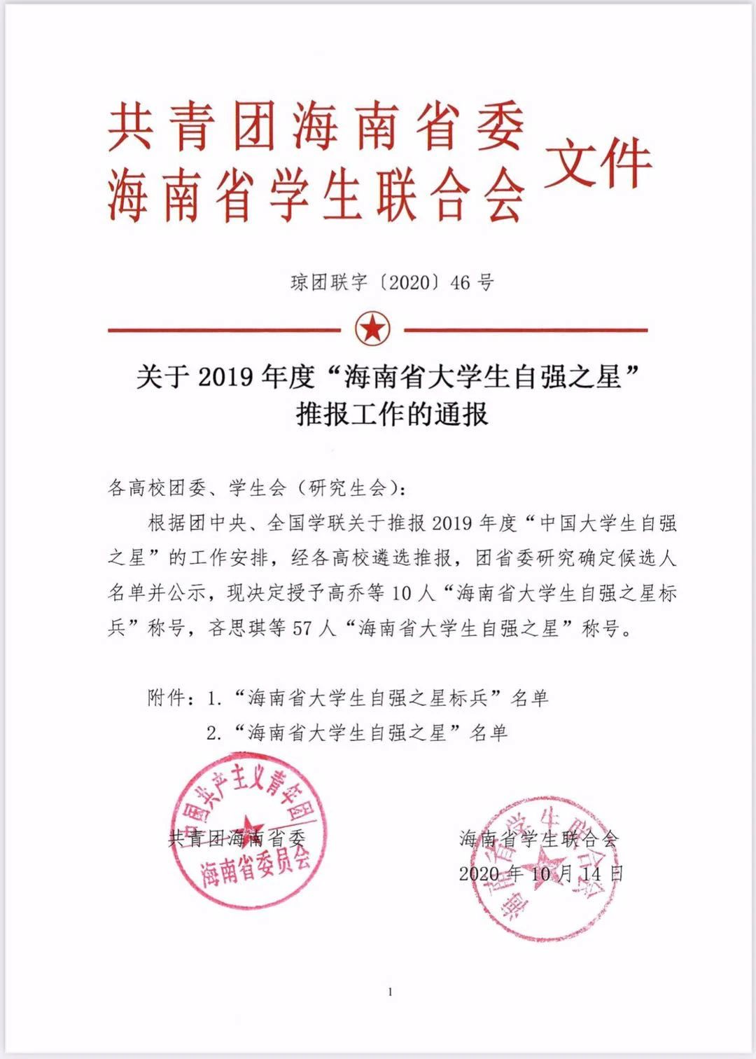 喜讯|我院符志昕、杨强同学荣获2019年度海南省“大学生自强之星”称号
