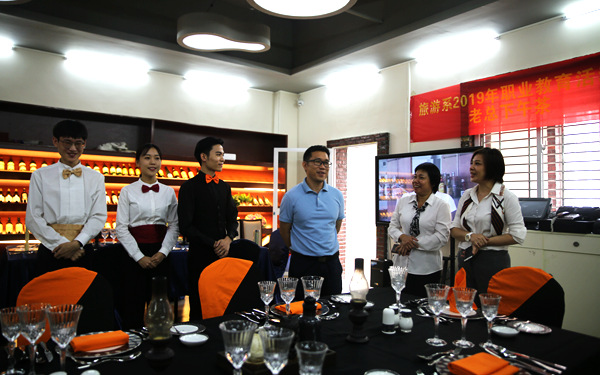 同天下午,曾锋书记也对我院旅游系实训室进行走访,旅游系党总支书记林明霞、主任李旭芳陪同走访。走访过程中,曾锋书记现场观看了旅游系的客房、西餐、中餐技能大赛三位选手优秀的技能展示,对他们的比赛成绩作出了肯定与表扬,希望他们能再接再厉,继续做到更好,成长为这个行业的优秀人物。