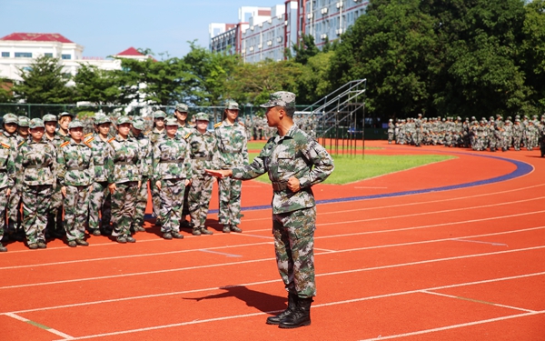 在教官的鼓舞下,大家咬紧牙关,与烈日抗争,与高温搏斗,就算是身体羸弱的同学,万不得已休息了一会,又立马上阵,就算是汗水流进眼里,也会打声报告擦干汗水依然坚持不懈。其间看到可敬的教官亲自为同学整理衣领,不禁油然而生出感动之情。同学们挺直腰板,在如火烈日的炙烤中投下巍然不动的矫健身影,在洒满汗水与泪水的训练场上刻下青春无敌的飒爽英姿。