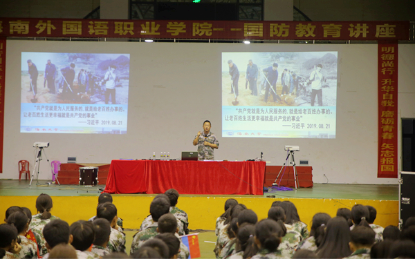 为引导广大学生树立正确的国防意识,增强国防观念,激发爱国热情,同时作为2019级新生入学教育的一部分,9月20日晚,我院邀请海南大学副教授、全国军事课教学指导委员会成员黄海宁来校为全体新生带来一场精彩的国防教育专题讲座。学生处副处长符兴宝主持讲座。