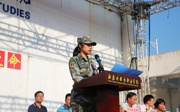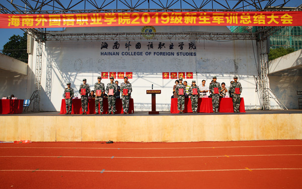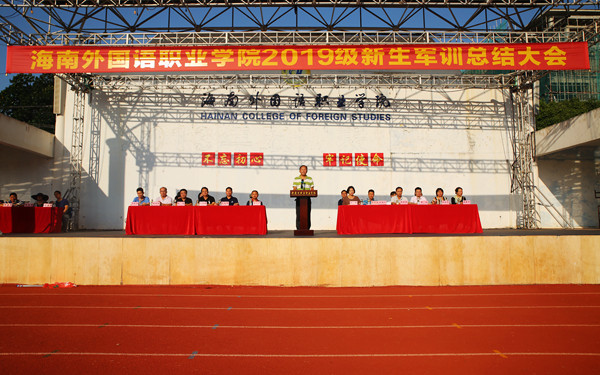 9月22日上午,我院2019级新生军训总结大会在田径运动场举行。学院党委副书记、纪委书记徐畅,文昌市某部队领导,以及有关部门、各系部负责人,全体承训官兵、参训新生参加大会。大会由学生处副处长符兴宝主持。