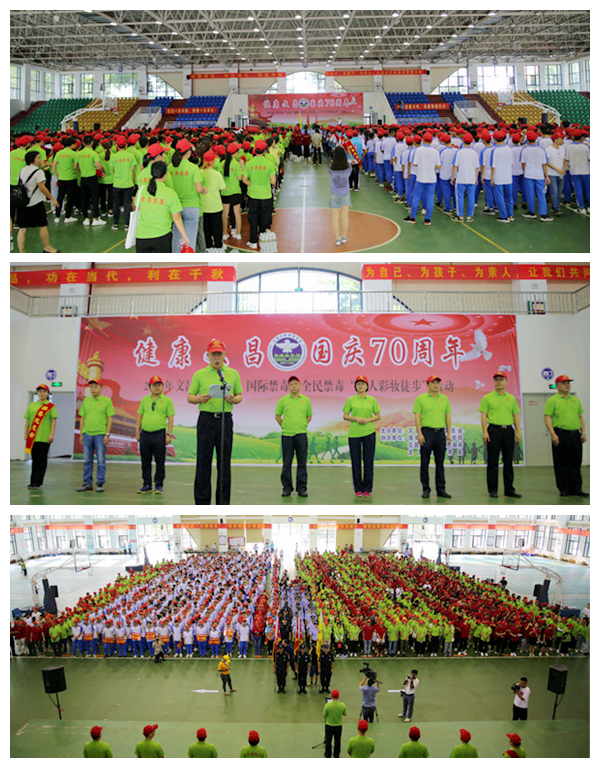 6月24日上午,以“健康文昌 国庆70周年”为主题的2019年文昌市“6.26”国际禁毒日全民禁毒“万人彩妆徒步”活动在我院体艺馆启动。我院党委副书记、纪委书记徐畅,党委委员梁松,以及各系部1000多名师生参加活动。参加活动的还有文昌市禁毒委成员单位主要负责人、政法系统、边防支队、志愿者代表、干部群众代表。