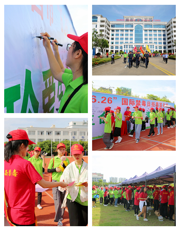 我院作为此次活动的主会场,组织了逾千名师生参与其中。长期以来,我院高度重视师生禁毒宣传教育工作,通过主题班会、专题讲座、演讲比赛、签名倡议、知识培训、校内宣传阵地教育等方式对师生开展经常性教育,让师生深刻认识、了解并防范各类毒品危害,让广大师生从思想源头上树立识毒、防毒、拒毒意识,学到如何保护自己、远离毒品的实用知识。