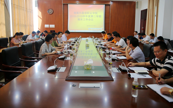 会上,党委办公室、学院办公室、教务处、学生处、后勤处、国际交流中心、英语系、旅游系等部门、系部负责人作期末工作情况和暑期及新学期工作计划安排汇报。