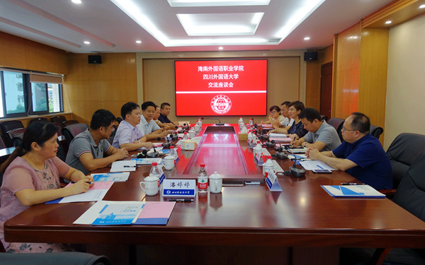 杨学前副院长感谢四川外国语大学的热情接待,并介绍了我院办学基本情况,重点介绍了我院办学思路、办学理念和人才培养模式,以及服务海南自贸区自贸港建设等方面情况。他指出,我院作为高职类院校,深知与本科类高校在办学水平上的差距,此次访问,希望多学习四川外国语大学优秀的经验做法,为自身建设提供借鉴参考,希望双方充分交流,让此行学有所获。