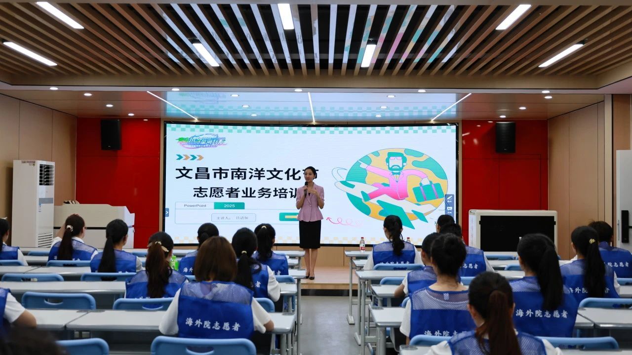 2025年第十一届海南文昌南洋文化节即将于4月3日至6日举行。为了更好地迎接南洋文化节,提升志愿者服务品质,beat365团委组织选拔了64名志愿者,并于近日联合共青团文昌市委举办了2025年南洋文化节志愿者业务培训与服务礼仪培训。