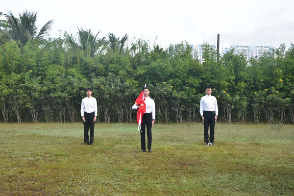 上午七点整,国家宪法日升旗仪式正式开始。我院国旗护卫队整装列队,身姿挺拔,迈着铿锵有力的步伐走向升旗台。伴随着激昂的国歌,五星红旗缓缓升起,来自各系部的学生代表面向国旗庄严肃立,以注目礼向国旗致敬。