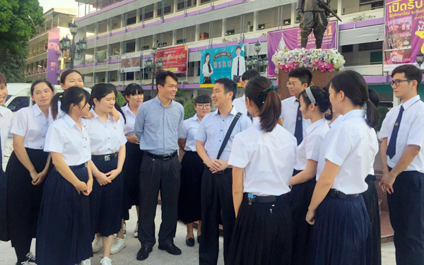 11月3日上午,我院访问团还到泰国吞武里大学看望了我院14级在泰国学习和实习的泰语专业学生,并参观了吞武里大学的校园、学生宿舍、学生食堂,深入了解学生在泰国的思想动态、生活学习、宿舍设施、实习工作以及交通安全等情况。在与学生交流的过程中,我院访问团对14级的泰语学生寄予希望,希望同学们认真学习习近平总书记2018年新年给莫斯科大学中国留学生的回信精神,牢记总书记回信中勉励同学们胸怀大志、刻苦学习、早日成才的谆谆寄语,把学习到的本领奉献给祖国和人民,让青春之光闪耀在梦想奋斗的道路上,做好中泰文化交流的友好使者,为促进中泰的经济、文化发展贡献自己的力量。