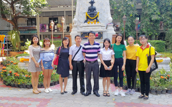 访问期间,我院访问团还参观了泰国班颂德昭帕亚皇家大学校园,聆听了泰国吞武里时期的辉煌历史以及班颂德昭帕亚皇家大学创始人一生的伟大事迹。参观结束后,我院访问团与我院16级应用泰语专业学生会见,进入他们的课堂观摩了他们泰式点心制作课,倾听学生讲解制作点心的过程,观看学生们动手能力,感受学生融入当地的教学实践氛围。观摩结束后,我院访问团与我院16级应用泰语专业学生进行了座谈,当面了解了我院学生在泰国的学习及生活真实情况。学生都欢心地畅谈了他们在泰国的学习内容、生活感受以及对未来的规划等。在座谈会上,我院周运诗副院长对在泰国学习的学子们寄托于厚望,希望学生好好珍惜在泰国学习的机会,并利用好这段出国留学的时光,打好泰语专业基础,积累实习实践经验,提升自身的综合能力水平,早日学成归国,报效祖国。