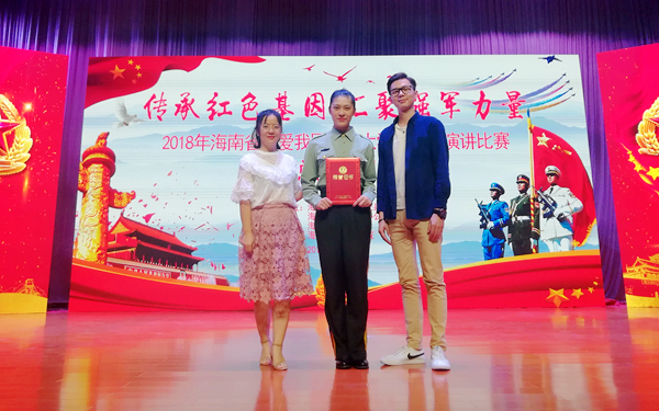 10月30日,由海南省国防教育办公室、海南省人民政府征兵办公室主办的2018年海南省“爱我国防”大学生主题演讲比赛在海南职业技术学院举办。经过前期初赛选拔,从全省高校中评选出的10名选手参加省级现场比赛。我院英语系17翻译(1)班眭琦同学参加比赛并凭借精彩表现斩获二等奖的好成绩。
