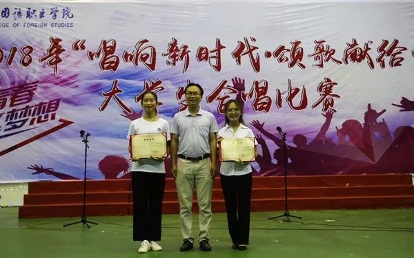经过激烈的角逐,英语系五年一贯制和高职高专队分别凭借《久久不见久久见》、《歌唱祖国》、《在太行山上》、《Do Re Me》获得第一等奖;人文艺术系、国际商务系A队、B队分别凭借《长江之歌》、《青春舞曲》、《同一首歌》、《国家》、《大海啊,故乡》、《我和我的祖国》获得二等奖;西语系、东语系、旅游系五年一贯制、旅游系高职高专队获得三等奖。其中陈显铃、刘秋婷同学获得了优秀指挥员。