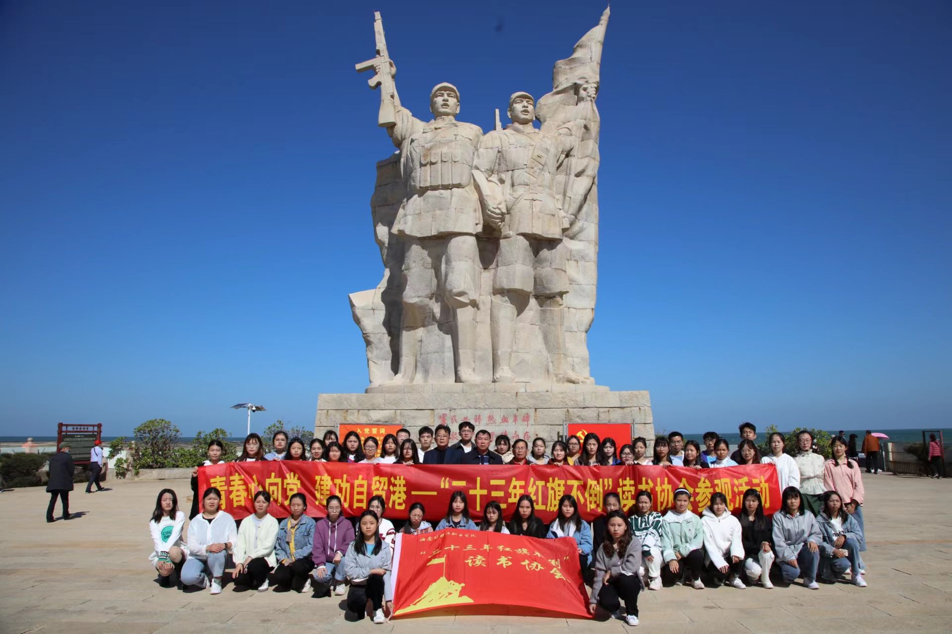 “二十三年红旗不倒”读书协会以“弘扬琼崖革命精神,激发学生爱国情怀”为宗旨。以“党建+”模式,联合关工委凝聚起关心青年大学生成长成才的合力,通过辅导、座谈、报告、访谈、演出、参观等多种形式组织学生读红色著作、看红色电影、唱红色歌曲,传承红色基因,打造红色文化思想阵地,使理想信念教育更鲜活、更生动,把“红旗不倒”的坚定信念、伟大精神根植于当代大学生心中,让红色基因渗进血液、浸入心扉。