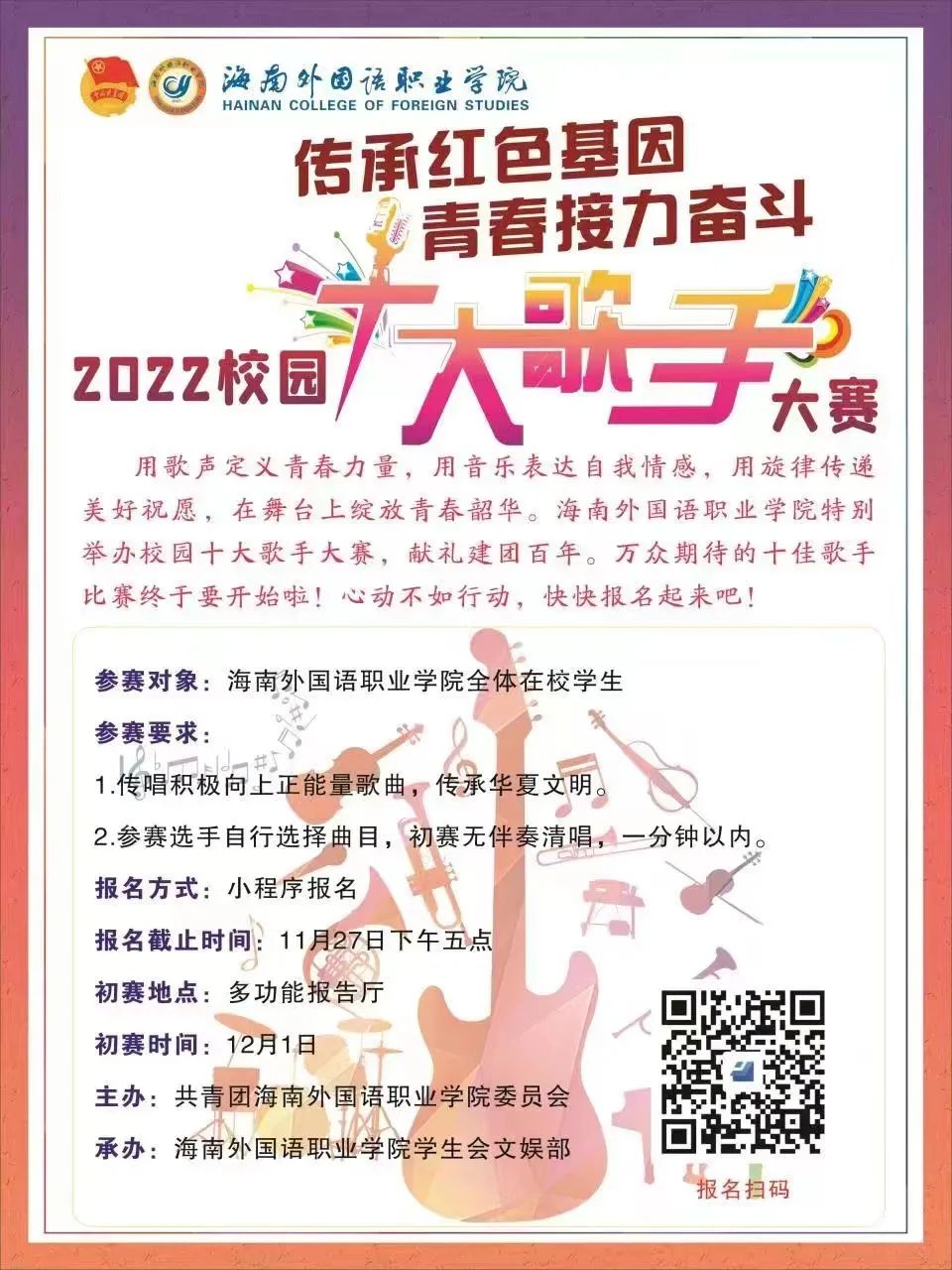 用音乐舞动青春,用歌声礼赞时代,校园十佳歌手大赛如期而至,12月1日,我们共赴“十佳”之约。