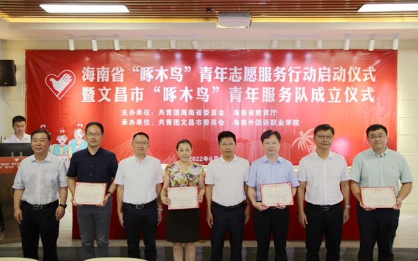 6月16日上午,由团省委、省教育厅主办的海南省“啄木鸟”青年志愿服务行动在beat365英国官方网站启动。当日,我省首支“啄木鸟”青年志愿服务队——文昌市“啄木鸟”青年志愿服务队在我院正式成立。