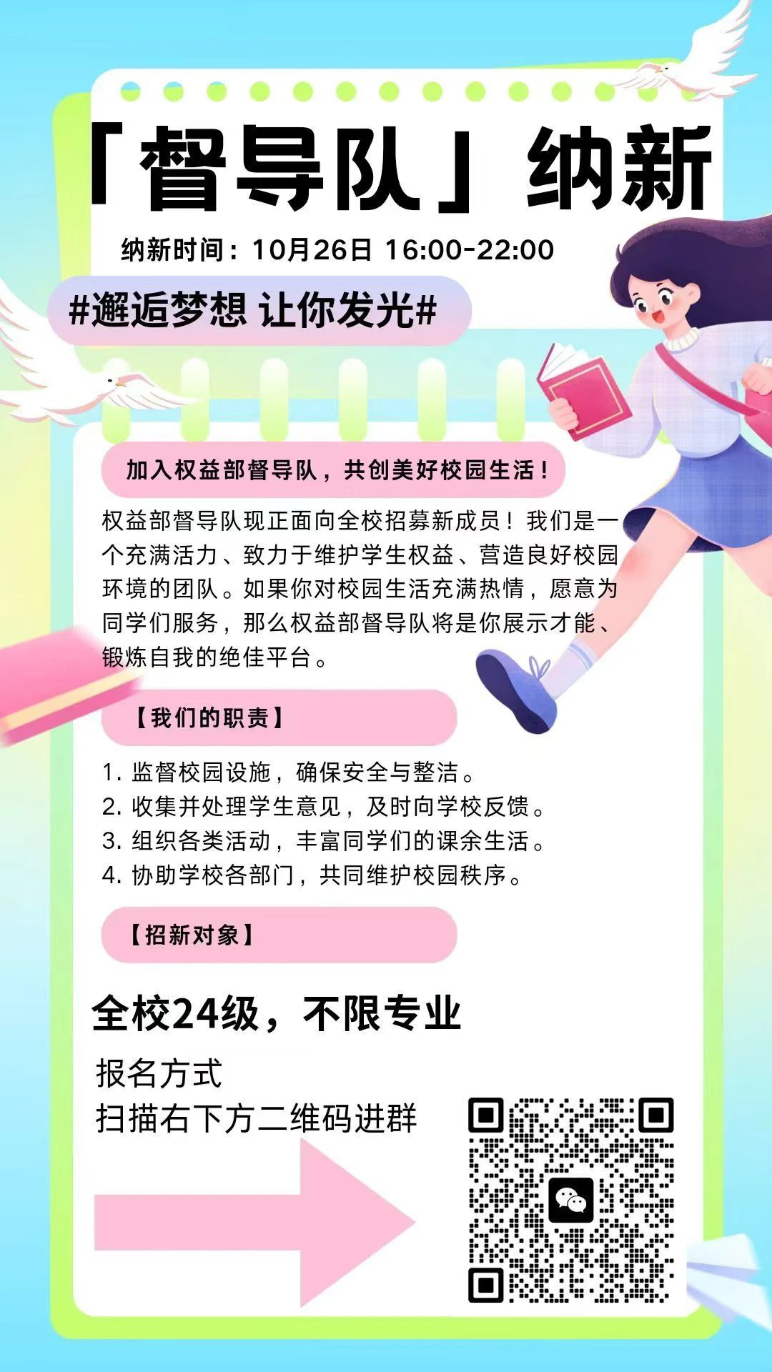 邂逅梦想 让你发光我们充满活力和热情有生活的地方就有我们的身影为爱同行 守护校园督导队火热招募中快来加入我们吧!