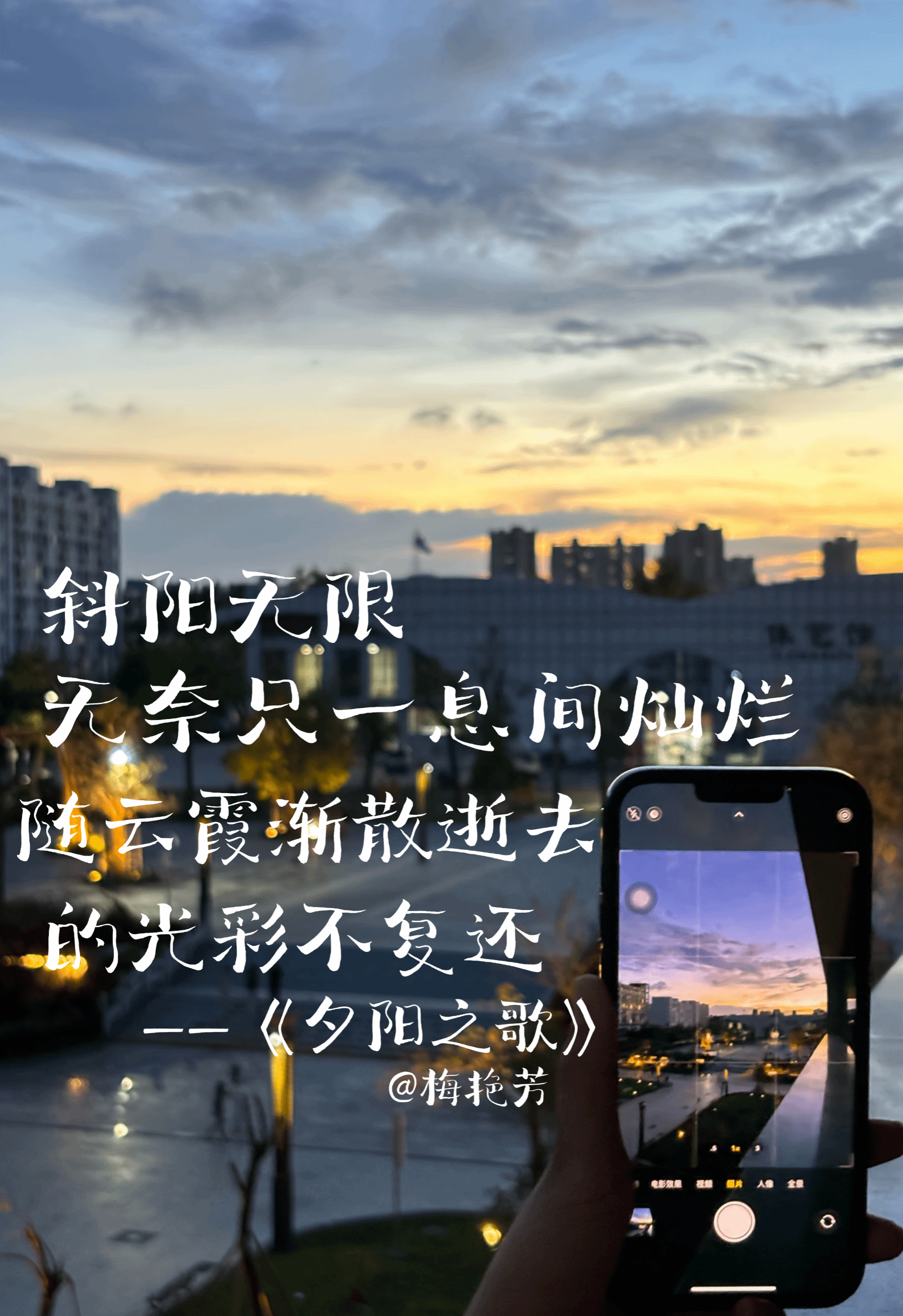 在海外院,我会反复为落日驻足傍晚十八点四十五分🌄如果你也刚好抬头看👀万物在光影中静谧夕阳缓缓西沉晚霞轻拂天际💫金光溢出云间☁️如绸缎般柔和红与蓝交织成梦🌟这一刻,时光停驻让烦恼随云散去在绚烂的晚霞下🌅感受生命的片刻美好于是,我们按下快门键📸将此时此刻永存相簿 🤳