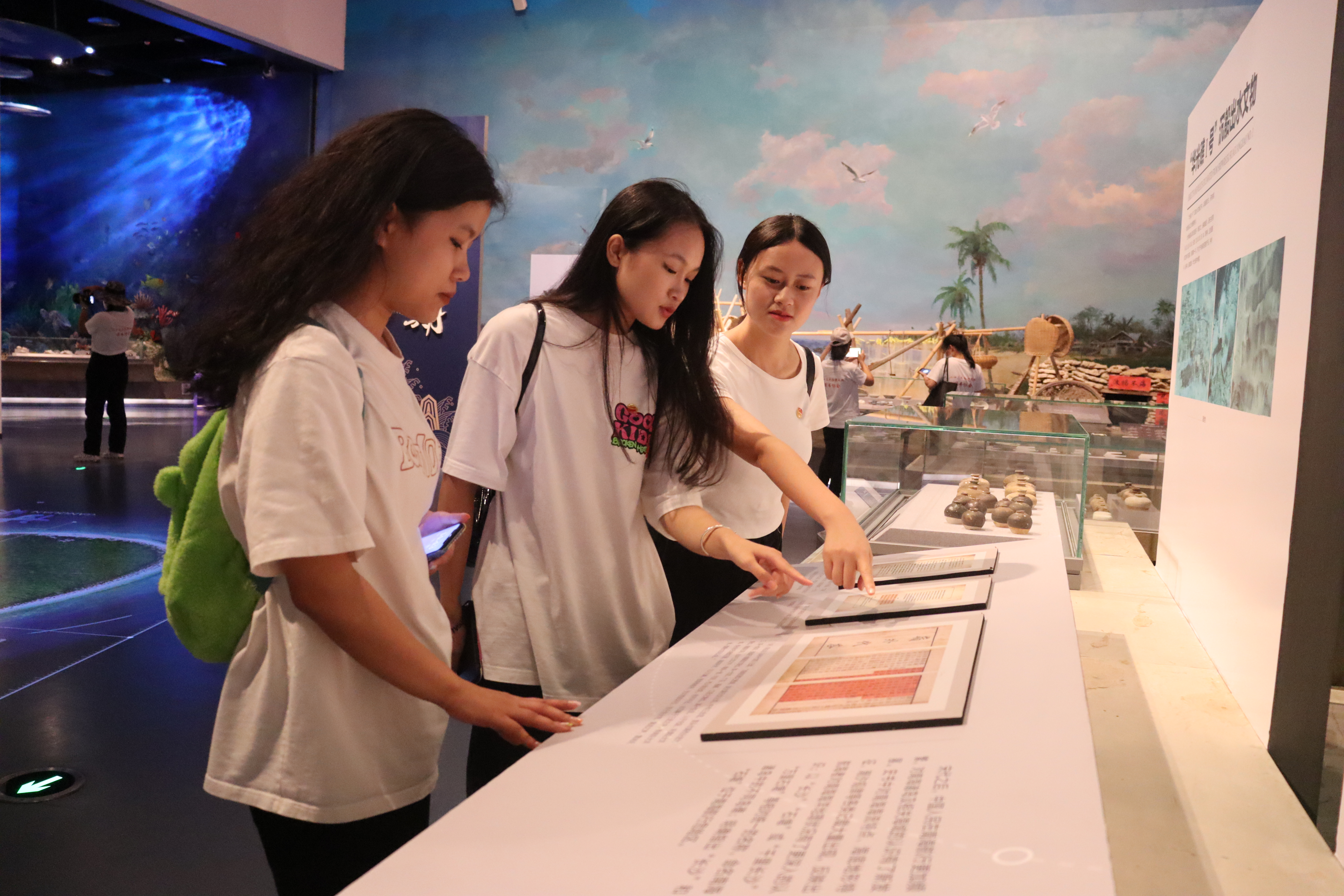 在中国(海南)南海博物馆近距离体验南海的人文历史,了解革命事迹,学习党的光荣传统和优良作风,感悟党的实践创造和历史经验,博物馆内自然生态、人文历史、探海寻踪等展厅展示了南海的恢弘历史,同时为同学们铺开一幅广袤富饶的南海画卷,让他们尽情探索深邃的历史遗迹。