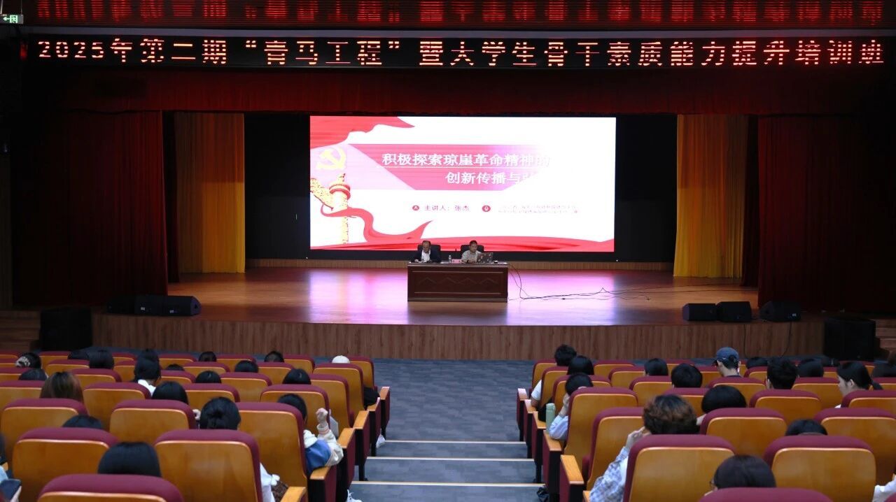 讲座围绕文化自信与时代使命,系统阐释了琼崖革命“二十三年红旗不倒”的精神内涵,剖析全媒体环境下主旋律传播的新挑战,并借助微电影、短视频等新媒体案例,生动展示了革命精神当代传播的创新路径。张杰老师结合自身采编实践中记录的老兵口述、历史守望者故事等真实片段,将红色记忆与自贸港建设的现实任务紧密连接,为在场团学骨干带来了深刻启发。