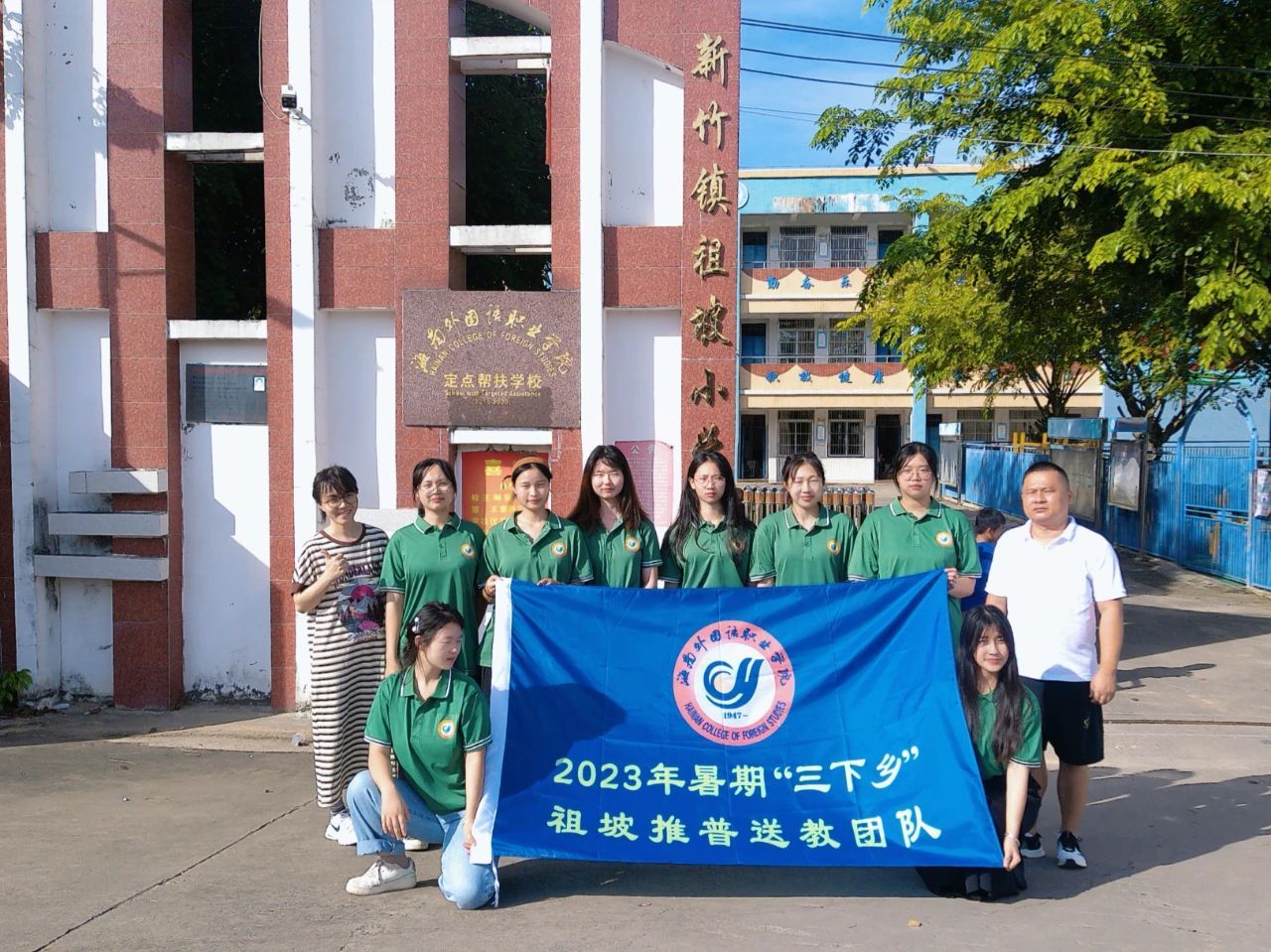 为深入学习贯彻习近平新时代中国特色社会主义思想,进一步落实“三下乡”社会实践活动文件精神,坚持“受教育、长才干、做贡献”的宗旨,7月15日,beat365英国官方网站祖坡推普送教团队在校团委韩琪老师和曾慧敏老师的带领下,一同定安县新竹镇祖坡小学开展为期15天的“爱心送教,情暖祖坡”社会实践活动。