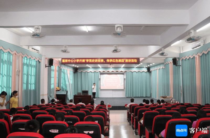 志愿者代表为文昌市蓬莱中心小学学生宣讲红色文化。学校供图