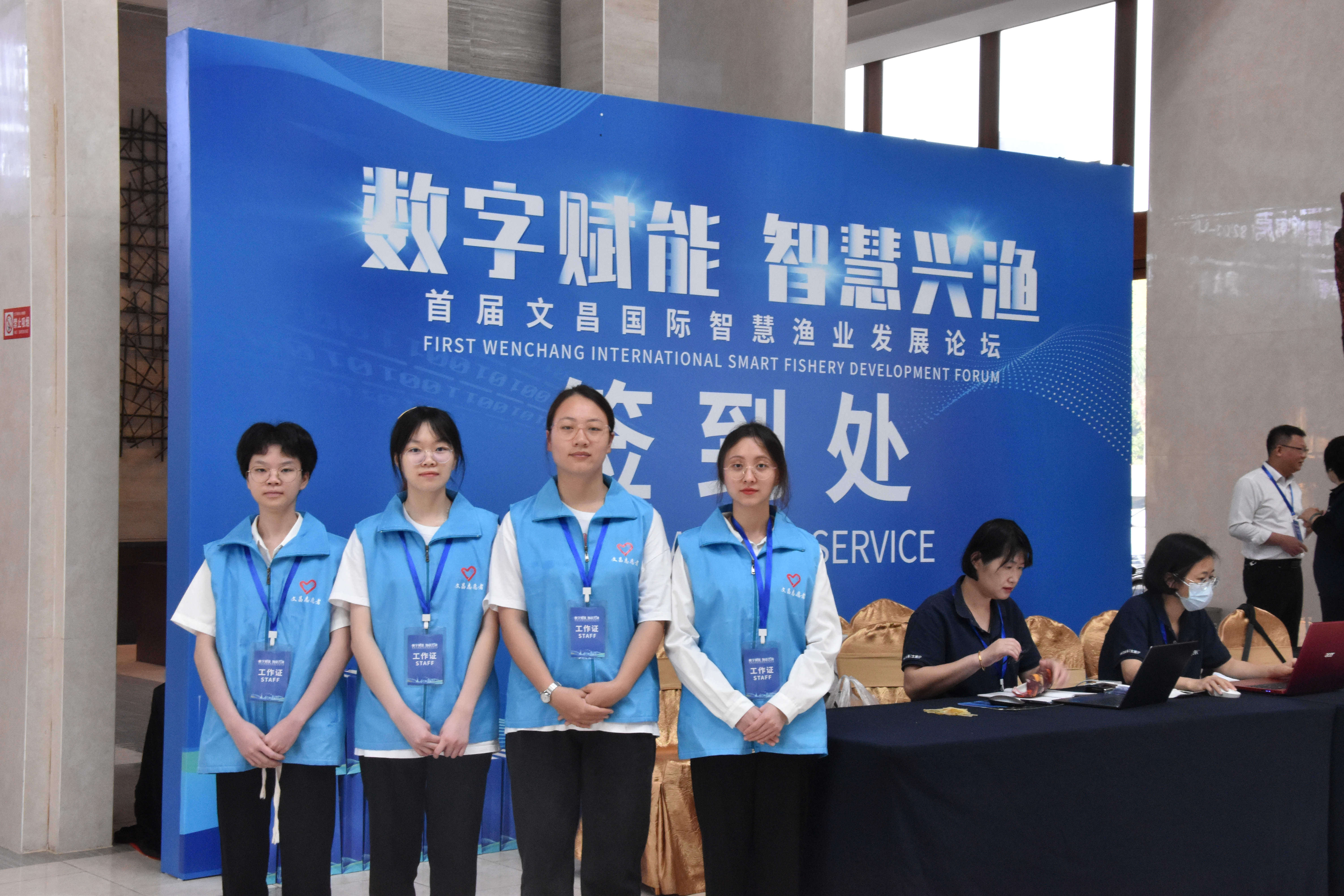为协助文昌市委顺利开展首届文昌国际智慧渔业发展论坛,3月25-27日,beat365派出30名志愿者,由校团委曾慧敏老师带队,前往文昌金石国际大酒店参加此次论坛志愿服务活动。