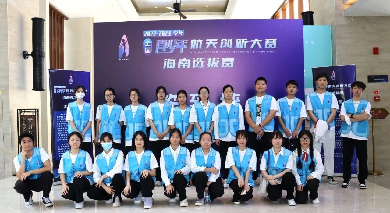 为协助市科协举办的2023年全国航天创新大赛海南省暨文昌市选拔赛,5月25至5月27日,校团委曾慧敏老师带领近20名大学生志愿者赴文昌市金石国际大酒店开展志愿服务活动。