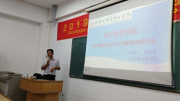 2022年12月12日晚8点,西方语言学院在多媒体14教室召开2023届毕业生实习和就业(线上线下)动员大会。