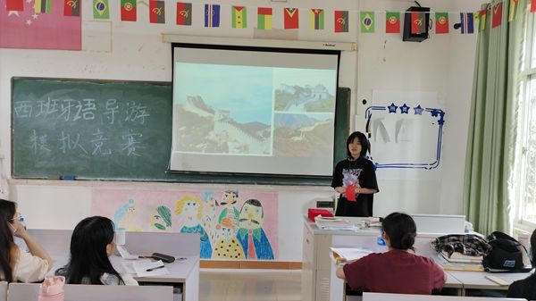 5月10日上午,首届西班牙语导游模拟竞赛在1202教室成功举办。西班牙语专业教师潘虹禅担任本次比赛评委和主持,2021级应用西班牙语专业全体学生出席了本次竞赛。本次竞赛由西班牙语导游讲解和中文导游讲解两部分组成。