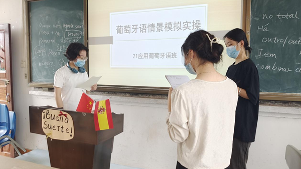 为了活跃葡语学生学习氛围,提高学生的学习积极性,考查一年级学生的葡语运用能力,西语系葡萄牙语教研室于5月11日在1404举行了葡语情景模拟实操活动,参与班级有21应用葡萄牙语班。