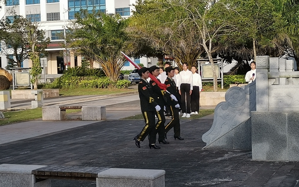 升国旗仪式结束后,黄书记发表“国旗下的讲话”,黄书记说:五星红旗是无数的革命先烈和共产党员用生命和鲜血染红的,我们要百倍爱护五星红旗,牢记革命先烈!五星红旗比我们的生命还要重要!五星红旗,我们都要为之感到骄傲和自豪!我们每个中国人不能忘记历史,大家要团结友爱,珍惜大学时光,勤奋学习,不负韶华,我们要广泛读书,认真学习“中国共产党史”、“改革开放史”、“社会主义发展史”、“新中国史”等,掌握本领,做一名合格的毕业生,听党话,感党恩,跟党走,为国家建设而努力读书,将来为祖国建设献出一份力量。
