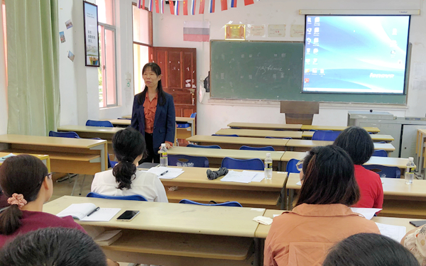 为全面推进“课程思政”建设,践行习近平新时代中国特色社会主义思想,使小语种课程与思政课同向同行,提升西语系课程思政教学的育人能力和水平,11月25日下午,我院西语系在一栋教学楼1304教室举行了2020年冬季小学期系列活动之“融课程思政于小语种教学”专题的教师风采展。学院党委黄丽芹副书记亲临现场听课并与大家交流。
