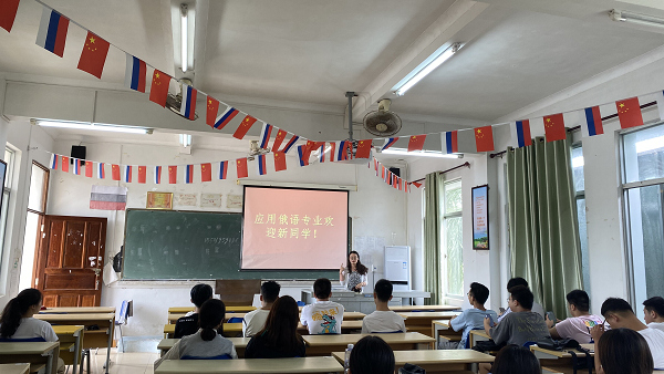 会议由俄语教研室主任赵晨希老师主持。第一环节是赵晨希老师为大家详细介绍了应用俄语专业的发展历史,自专业建设以来俄语专业所获得的荣誉、奖项以及强大的师资队伍,丰富的学习生活等。其次介绍了大家最为感兴趣的升学、就业板块,使学生们更清晰的了解应俄专业的升学和就业机会,对未来的学习、发展有了更为清晰的认识与规划。最后,与学生们互动,回答学生的问题,并祝愿学生们能在应用俄语专业度过充实、顺利的三年生活。宋佳佳老师也对学生提出了几点希望与建议,希望大家能够珍惜短暂的学习时间,提前制定学习规划与就业目标,不荒废时间,不浪费青春。