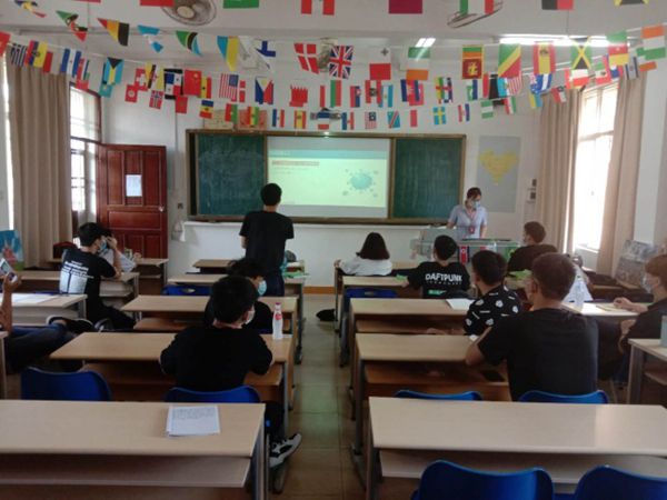 2020年5月20日,西语系已返校的102名学生在各班老师带领下积极开展了《复学第一课》主题活动。上午7点50分,教师和学生都佩戴好口罩,间隔一米,井然有序地进入一号教学楼。在课堂上教师带领学生复习了防疫卫生知识和学院各级管控措施规章,分享了疫情期间一线医务人员、民间爱心人士的感人事迹,带领学生梳理了国内外抗疫情况和相关新闻,学生受益良多。