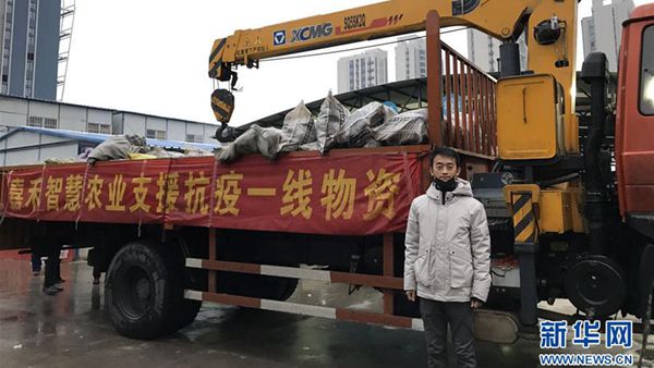 朱海洋所在公司向抗疫一线捐赠首批30多吨萝卜(2月5日摄)。 新华社发