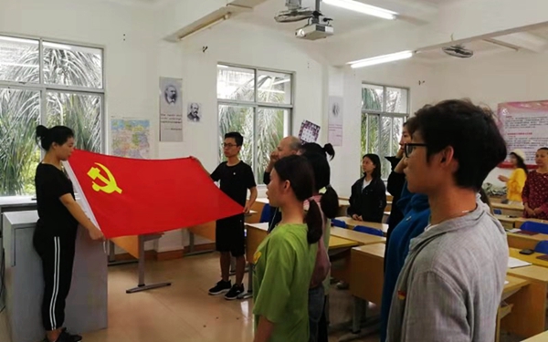 12月20日,我系第三党支部预备党员举行了宣誓仪式并且学习了优秀党员黄文秀的先进事迹。本次会议由我系团总支书记顾大育主持,我系党支部书记黄子艿出席,我系党组织宣传委员符达佳,我系学生科科长莫少金与全体学生党员参加。