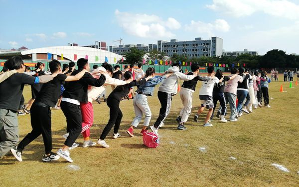 (我系代表队正在进行“众人一心”比赛)