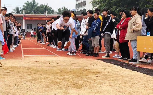 12月12日,迎着晨光,第二天运动会依旧如火如荼的进行着。8点30分,赛场上运动员们已准备就绪,加油助威声此起彼伏。田径赛场上的跳远运动员,脚下是坚实的跑道,眼中只有前方,他们面对目标跨出坚定的步伐,跳了一次又一次,不断超越自我。我系19应用俄语班的胡在彬同学在高职男子跳远比赛中以5.01米的成绩拔得头筹,夺得第一名;同时,18应用法语班的邓钧华同学以4.86米的成绩荣获第二名。