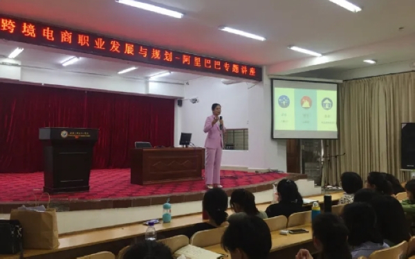 跨境电商行业是近年来我院西语系小语种专业毕业生选择最多的一个就业去向。为了让在校生在就业前能对跨境电商行业及其相关工作岗位有一个很好的职业认知,从而更好地做出职业选择和发展规划,11月20日下午,我院西语系邀请阿里巴巴国际站运营专家、阿里巴巴云桂区域合伙人李易寒总经理来校,在图书馆多功能报告厅为西语系全体在校生举办了一场“跨境电商职业发展与规划”阿里巴巴专题讲座。