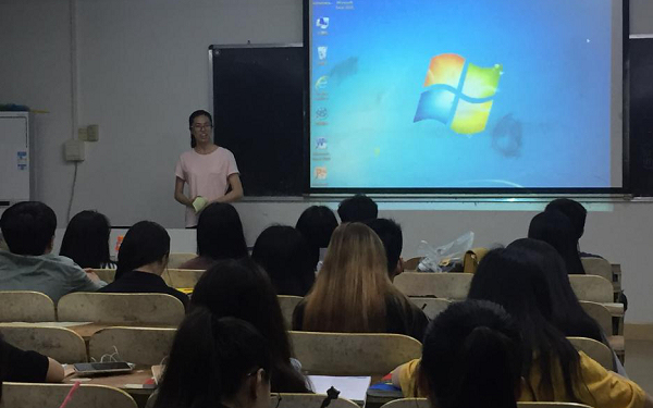 法语专业黄天源教授对我院师生的到来表示了热烈的欢迎,并安排了18级的4名同学带领我们熟悉校园。广西民大的同学们都非常很热情,活泼,带我们去学校接待所,逛校园,熟悉上课路线,还贴心地帮我们复印了上课需要的资料。
