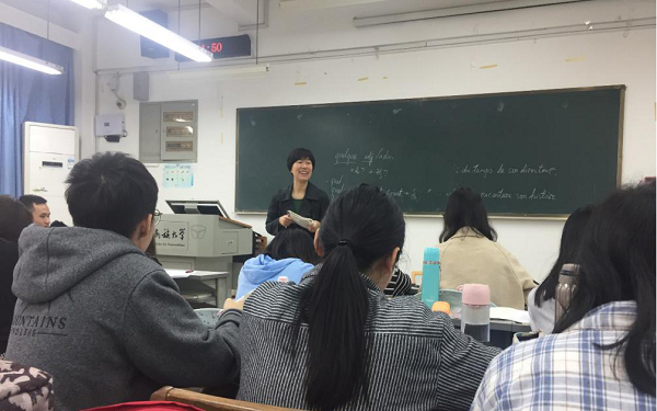我们第一堂课是洪雯老师的基础法语课程,洪老师课前贴心的安排我们的学生和班级同学岔开坐,便于尽快融入课堂进行互动。我们注意到洪老师非常有耐心,会一步一步引导基础较弱的同学,课堂上注重学生的自主思考能力,课堂气氛非常活跃,师生间的互动也十分有趣,学生们的词汇量很丰富。